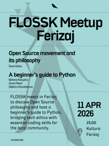 Shihemi me 11 prill, prej orës 15:00. Hajdeni me u taku dhe lidhë me komunitetin e FLOSSK në Ferizaj.